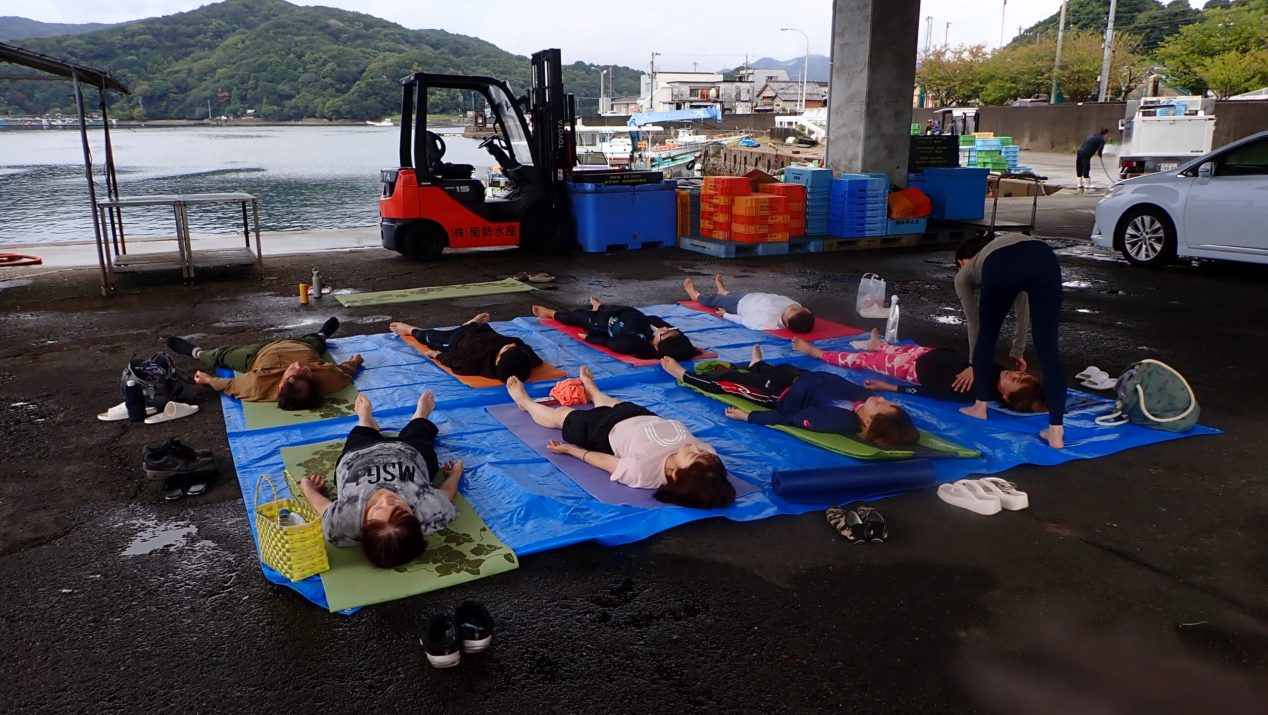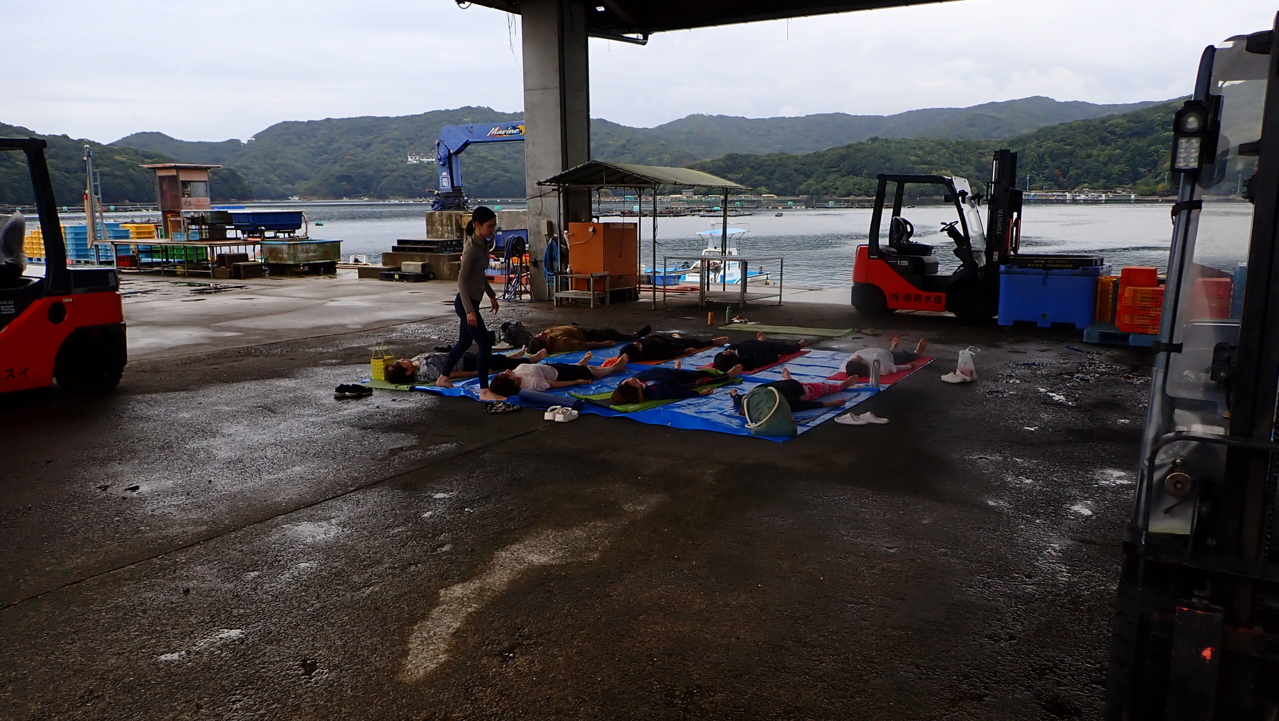 雨で心配でしたが、屋根付きのところでヨガができました。