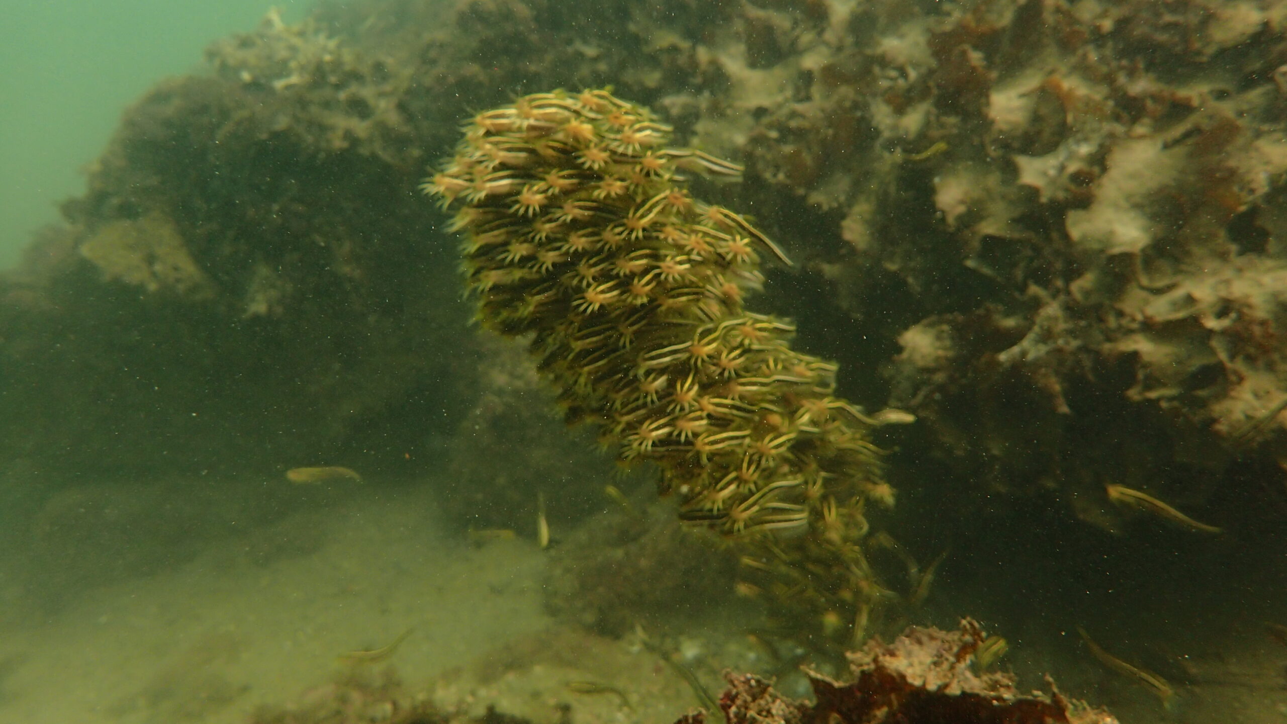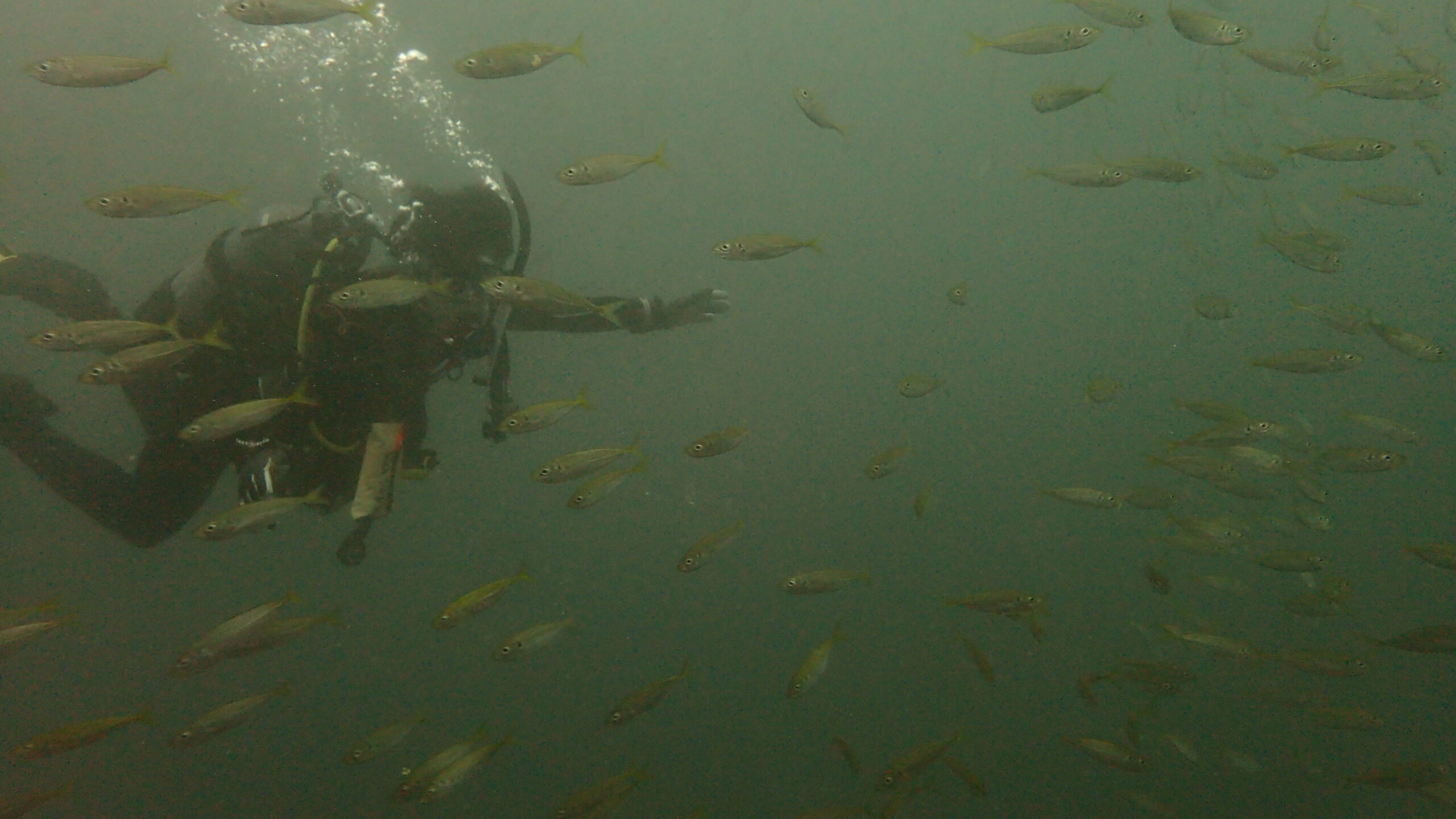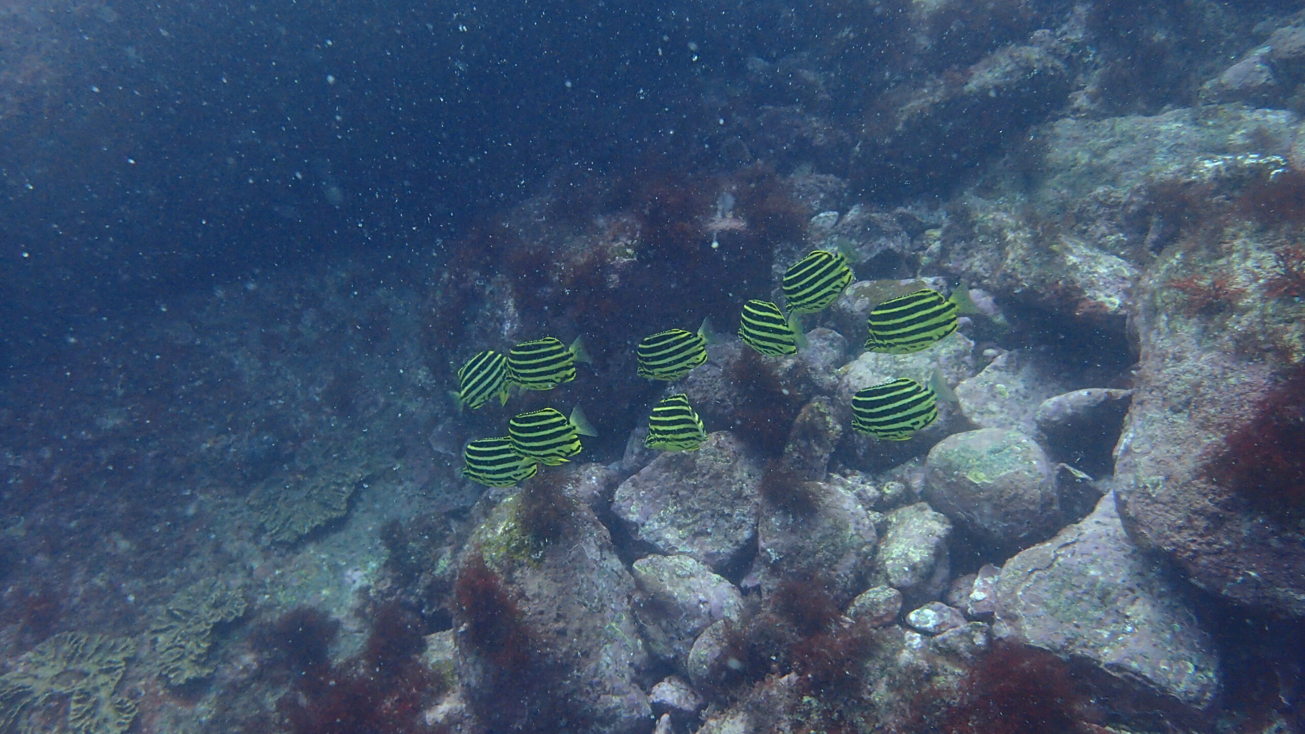クマザサハナムロの大群、シマアジの群れ、スズメダイの群れもいました